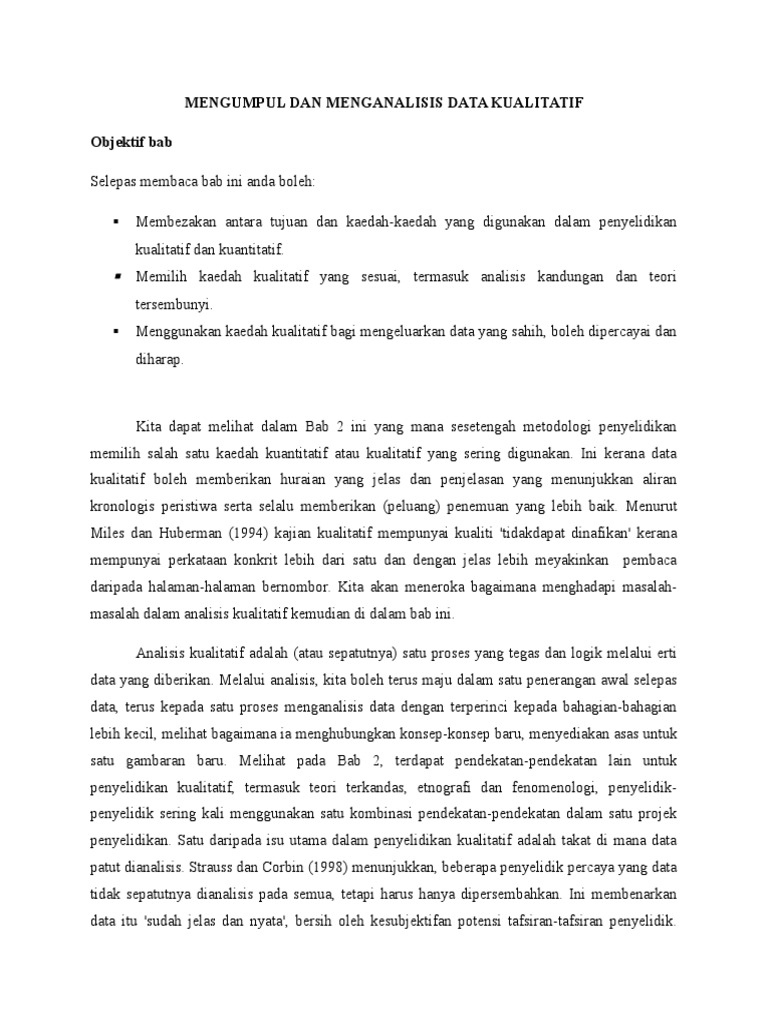 Pengumpulan Data Kualitatif Pdf Document from demo.vdokumen.net 3.2 kaedah kajian kajian ini mengaplikasikan kaedah kualitatif untuk mendapat data. Kaedah analisis bagi tujuan menerangkan statistik sampel tanpa membuat sebarang pentaabiran ke atas parameter populasi. Lokasi penelitian dipilih secara purposif berdasarkan topografi lokasi. Kegagalan analisis data berarti kegagalan penelitian secara keseluruhan. Data kualitatif diperoleh melalui berbagai macam teknik pengumpulan data misalnya wawancara, analisis dokumen, diskusi terfokus, atau observasi. Dalam penelitian sosial, bila kita membagi kategori metode riset ke dalam dua bagian yaitu kualitatif dan kuantitatif, maka metode analisis data yang diterapkan juga terbagi menjadi dua. Kaedah analisis pembentukan teori digunakan dalam rekabentuk kajian teori beralas menggunakan data yang diperolehi seperti data temubaul, pemerhatian dan dokumentasi, pengalaman membuat pengekodan. Prosedur yang digunakan, (3) pengumpulan data , termasuk kajian literatur dan.