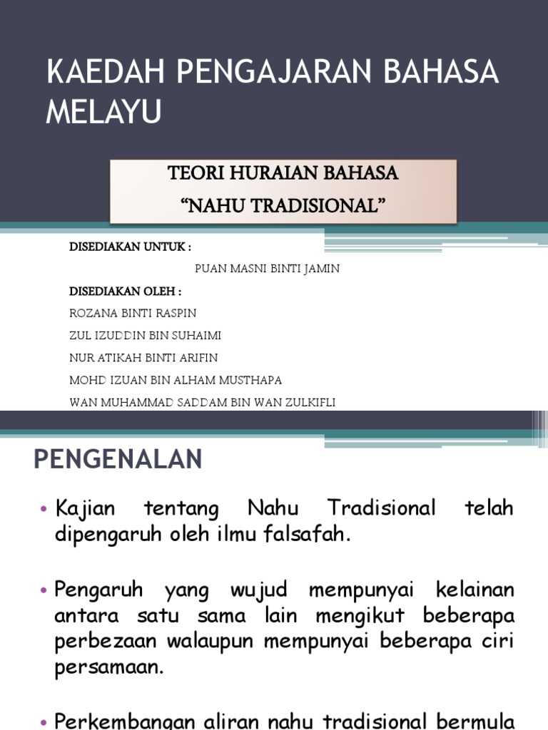 Menurut ahmad syalabi (1980) : Nur farahkhanna binti mohd rusli. Kaedah pengajaran bahasa melayu sekolah rendah. Kaedah ini sangat popular dalam mengajar bacaan dalam bahasa inggeris, namun guru boleh mencuba kaedah ini untuk mengajar membaca dalam bahasa melayu. Melalui internet, penggunaan bahasa melayu melewati batas geografi dan waktu. Asas dan binaan kukuh kepada membaca. Contoh rancangan pengajaran harian bahasa inggeris tahun 6. Cakera padat untuk pembelajaran bahasa melayu telah diwujudkan oleh pihak penerbit buku teks. Menu utama bahasa ilmu kajian bahasa melayu sejarah bahasa melayu tata bahasa(morfologi) kaedah pengajaran bm peribahasa tatabahasa sintaksis puisi tradisional puisi moden cakna bahasa kssr sukatan pelajaran bm sr prosa klasik asal usul bm santai bahasa. Semua kaum mempunyai budaya yang tersendiri. Hal ini demikian kerana internet merupakan satu jaringan antarabangsa. Deria sentuhan dan pergerakan amat penting dalam sesuatu pengajaran yang bermakna selaras dengan deria penglihatan dan pendengaran. Antaranya ialah menggunakan kaedah multisensori.