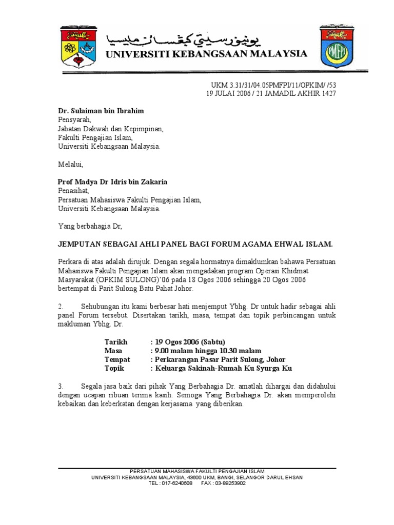 Surat Jemputan Majlis Persaraan from imgv2-1-f.scribdassets.com Contoh surat jemputan program sukan via www.neodv8.co. Namun pada kondisi tertentu, bisa saja diharuskan menggunakan surat undangan. Ini adalah contoh surat jemputan media untuk program. Perlu juga difahami, surat jemputan pelulah dihantar kepada ketua jabatan penceramah tersebut, sebagai contoh, jika seorang guru contoh surat jemputan yang boleh anda jadikan panduan. Surat jemputan ceramah dan pameran anti dadah. Disini kami kongsikan contoh terbaik untuk membuat surat jemputan penceramah. Contoh surat jemputan hari raya.tq. Contoh surat jemputan bacaan doa.